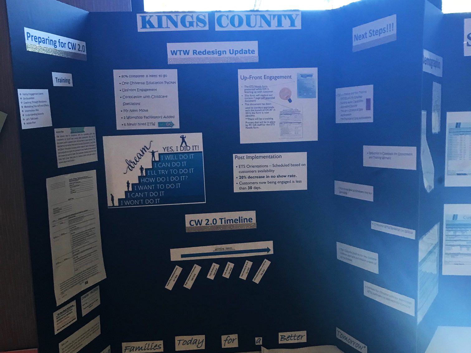 This space served as a show-and-tell, Q & A, and communications platform to get the word out about exciting innovations. We invited each county to share samples of CalWORKs 2.0 innovations, materials, posters, tools, road test findings, and so on.