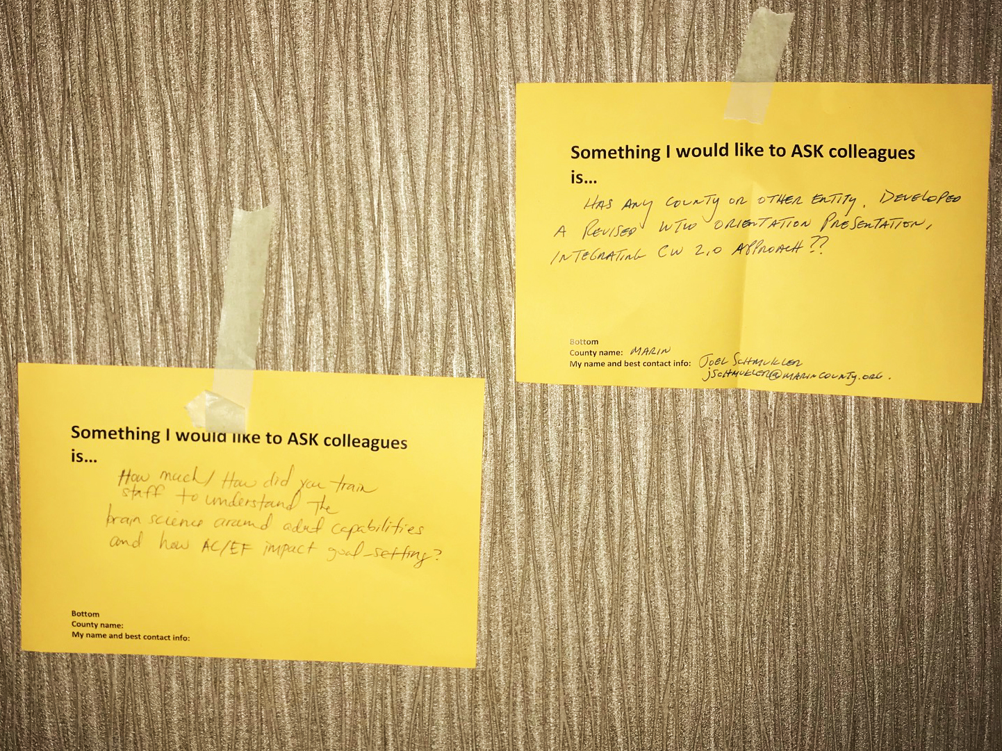 A critical objective of the September 25, 2018 convening was for you to have multiple opportunities to connect with other counties and to share information. One way we facilitated this was an in-person “Connections Corner.”