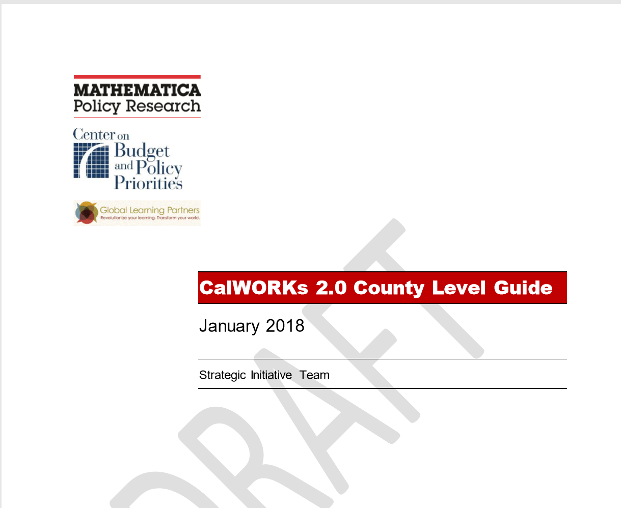 County Level Guide pdf Download here: CalWORKs 2.0 County Level Guide_v4.docx February 8, 2018 County Administrative Tools